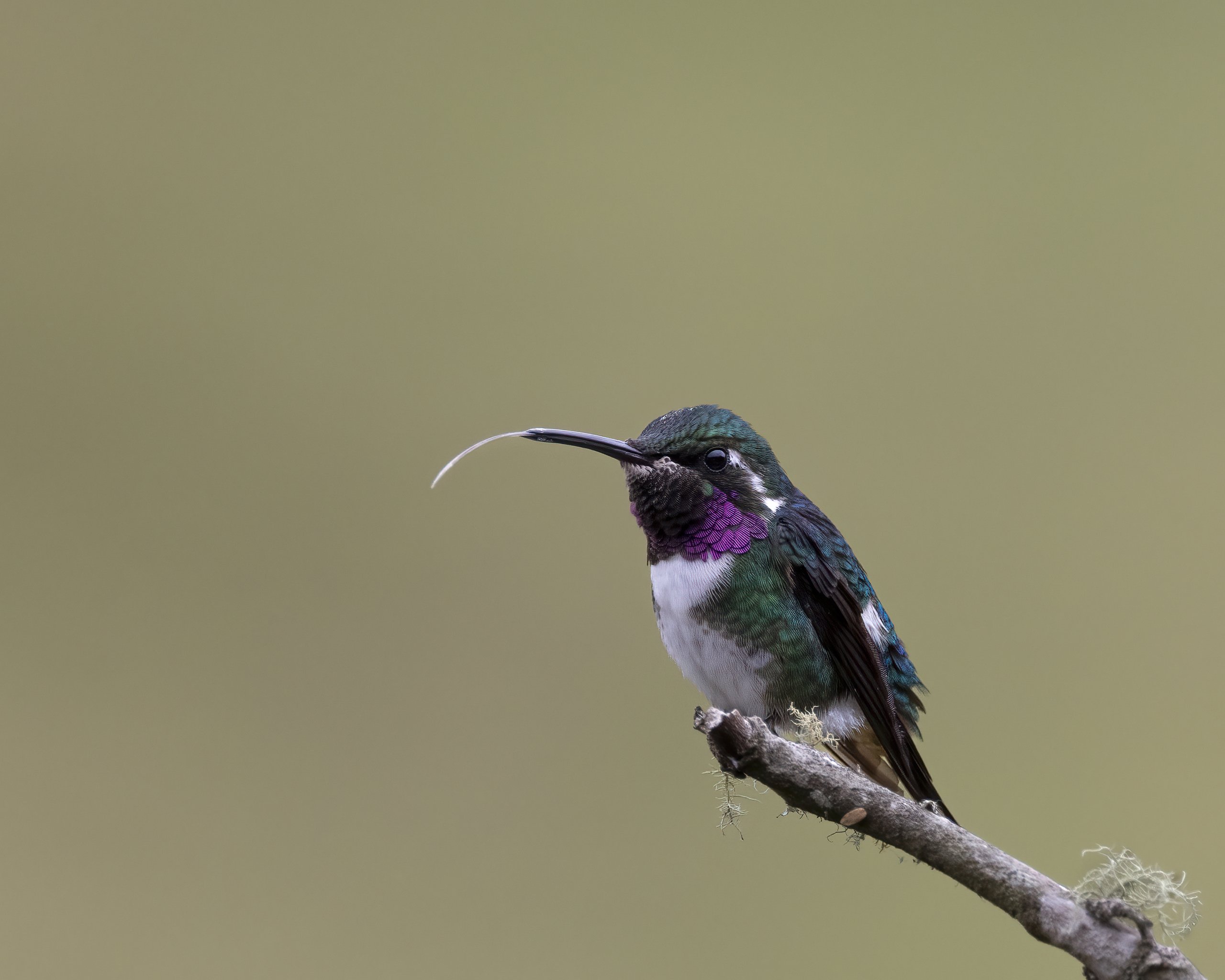 Ein männlicher Purpurkehl-Sternkolibri (White-bellied Woodstar) aus Ecuador. Dieser winzige Kolibri besticht durch seine lebhaften Farben und seine unglaubliche Flugakrobatik.