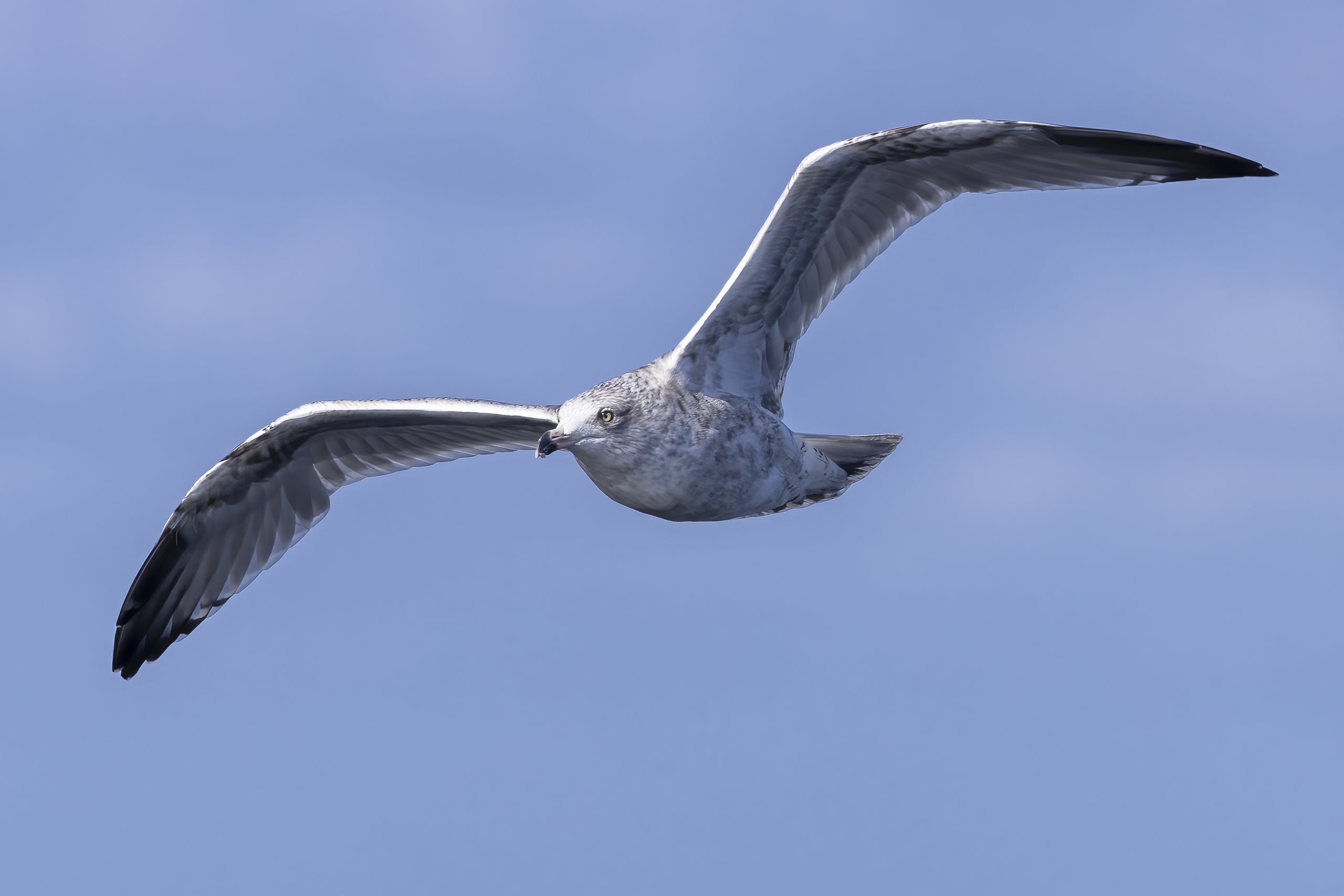Eine Silbermöwe, eingefangen im perfekten Moment. Die elegante Haltung und das detaillierte Federkleid machen dieses Porträt zu einer eindrucksvollen Studie der Küstenvögel.