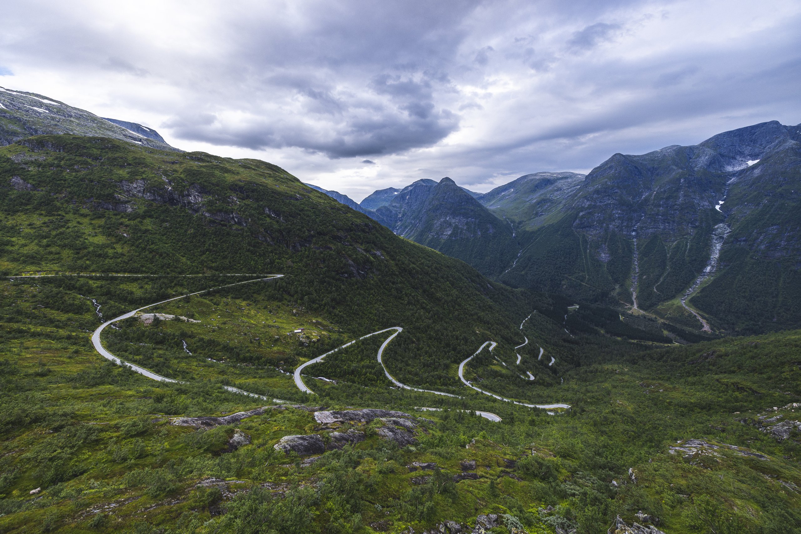 Der Trollstigen in Norwegen – eine der spektakulärsten Passstrassen der Welt. Die elf Haarnadelkurven schlängeln sich dramatisch den steilen Berghang hinauf und bieten atemberaubende Ausblicke.
