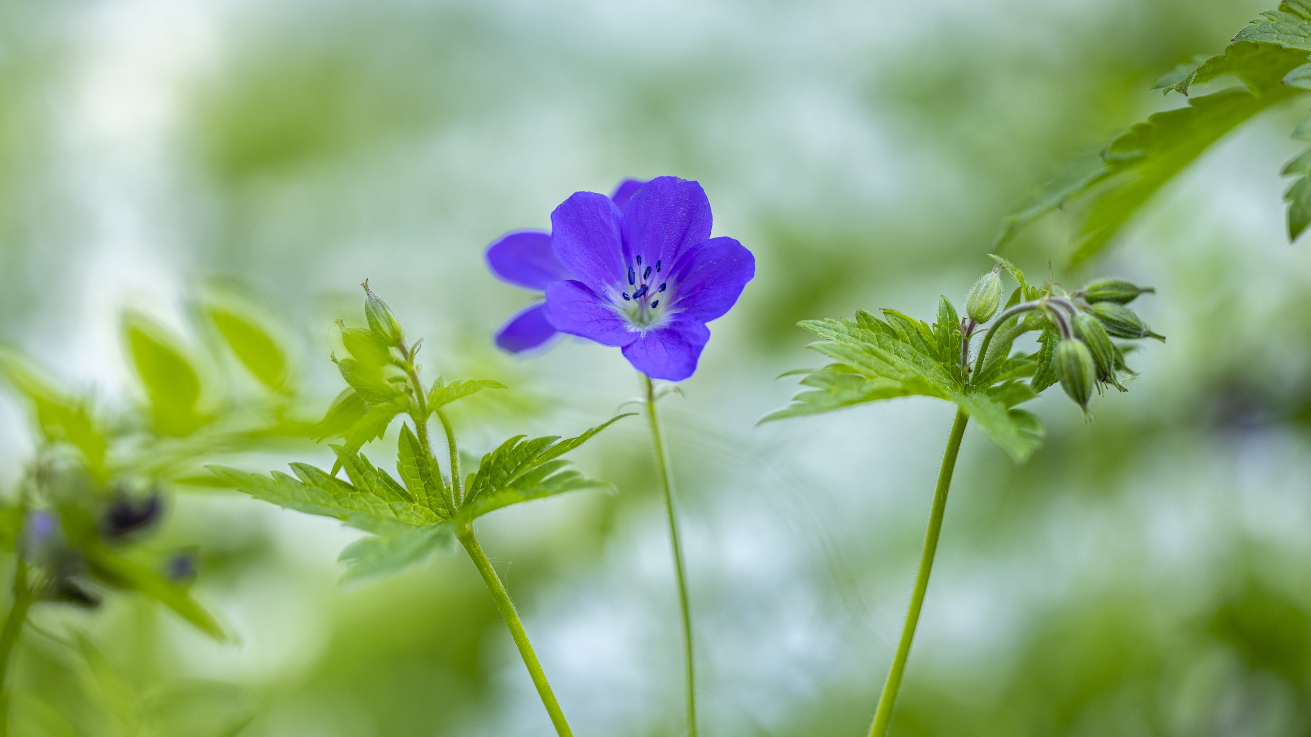 Der Wald-Storchschnabel in zarter Blüte. Die violetten Blütenblätter mit ihren feinen Äderungen zeigen die verborgene Eleganz dieser heimischen Waldpflanze.